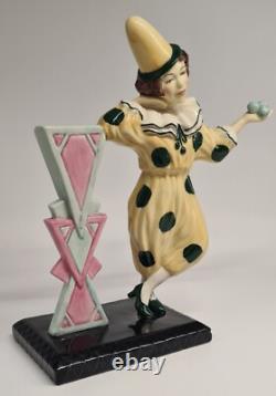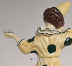Kevin Francis/Peggy Davies LIMITED EDITION figurine of Pierrette, the female clown. Limited edition 18 of 200. Pierrette is dressed in yellow with dark green spots and a white collar. She is holding three blue juggling balls. No chips, cracks, crazing or restoration. From a smoke free home.